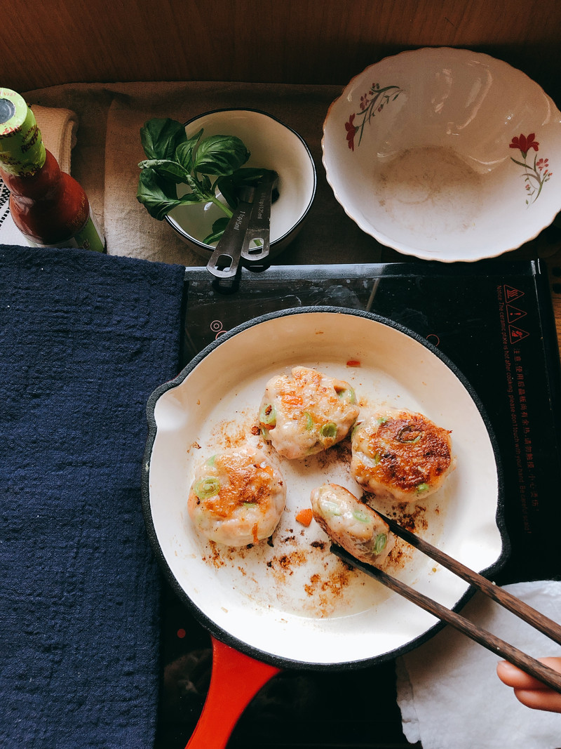 市售的虾滑不单单只有『被挤成丸子烩入热汤里』这一种命运!它也可以变成煎饼。