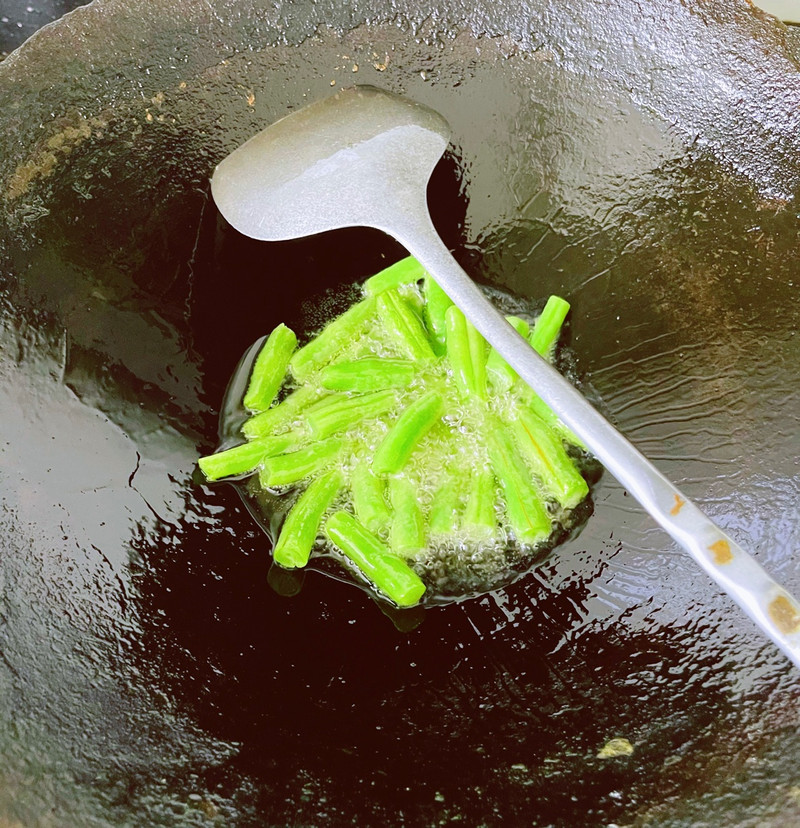油炸过后基本上熟了,炒起来很快加调料翻炒一下即可