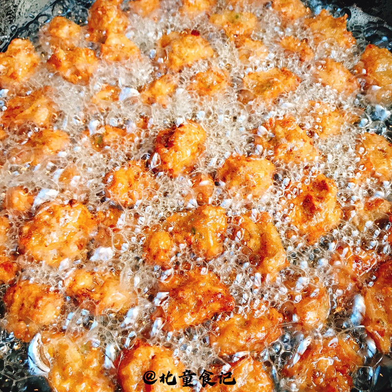 3.不用刻意追求圆形丸子的形状,不规则形状的丸子更脆