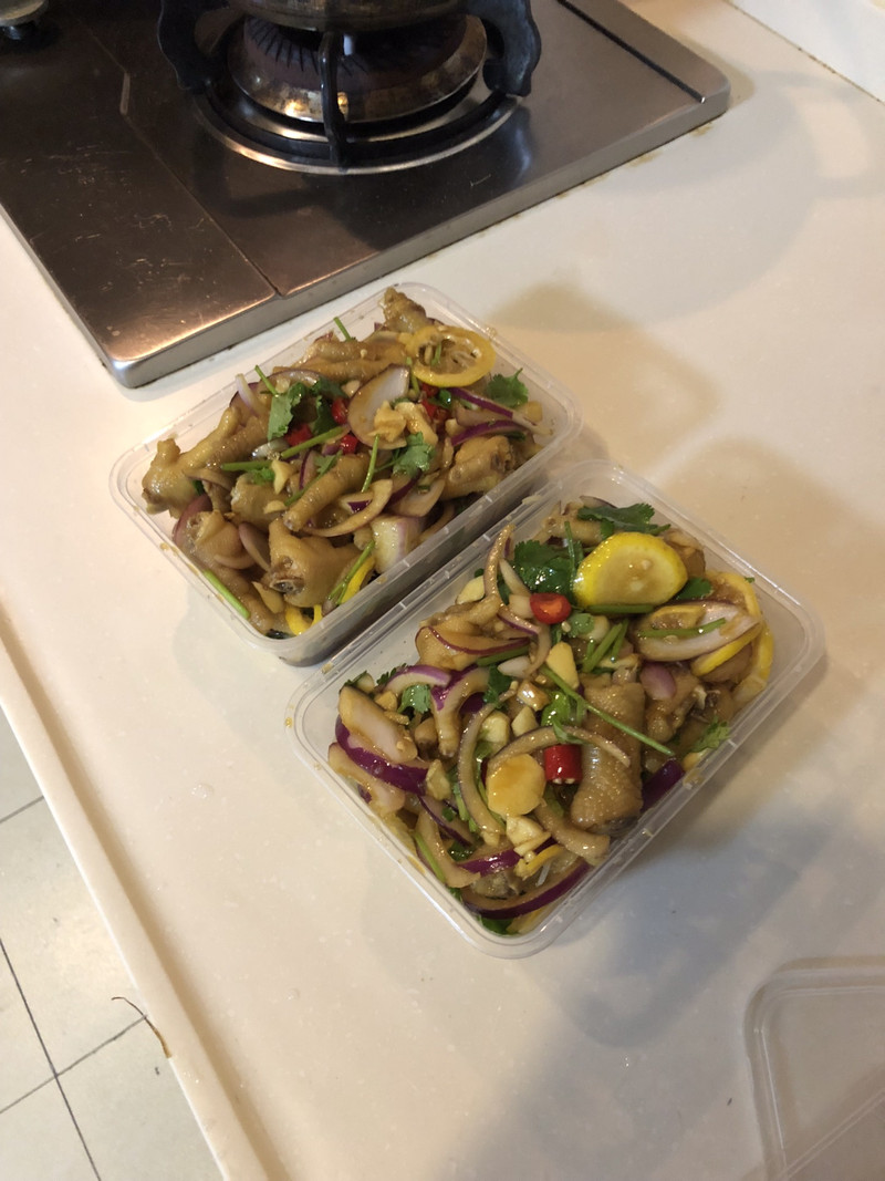 这道凉拌菜,加入了天地壹号苹果醋,跟百香果,柠檬,这样子,凉拌鸡脚多了一份水果的香气,使我们的胃口大增。越吃越想吃