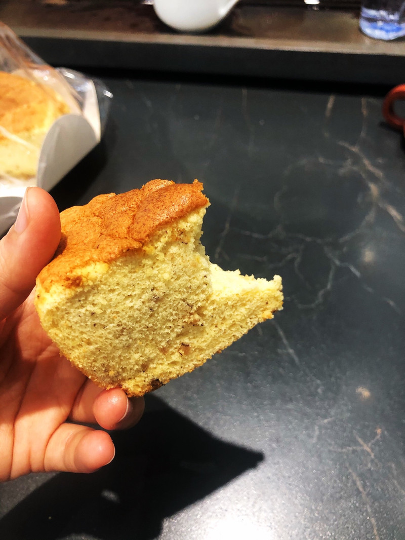 烤好马上拿出来垂直摔几下震出热气,这样晾凉的蛋糕会保持松软、不会变踏实、塌腰!