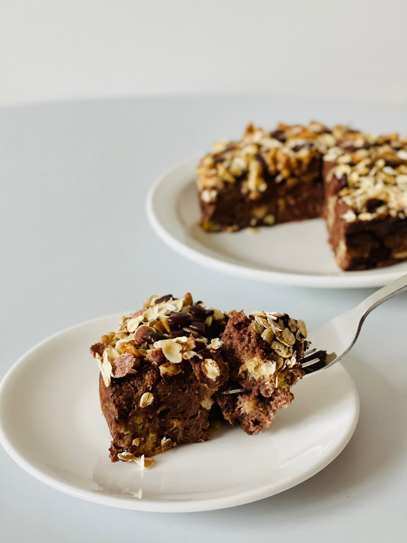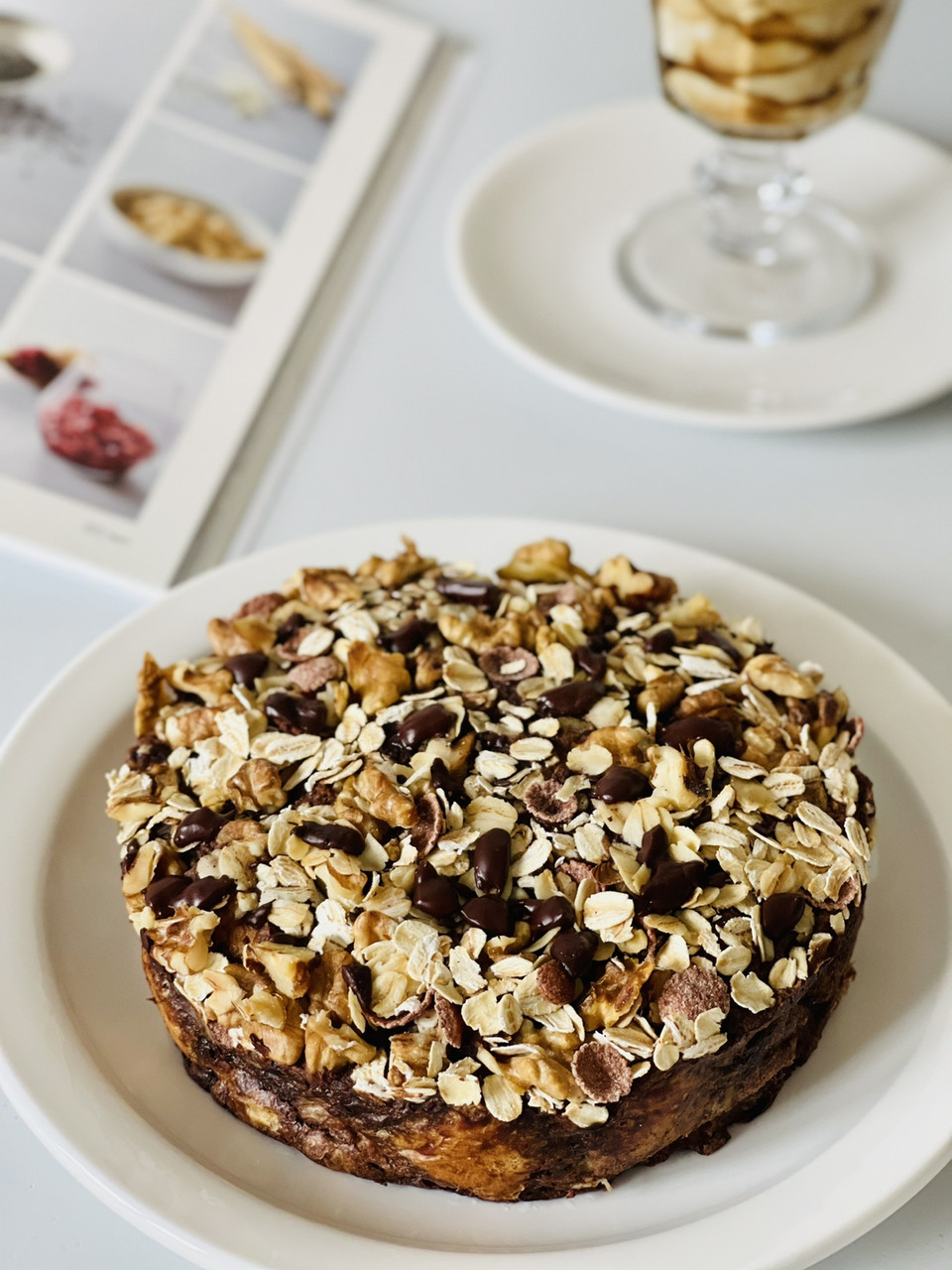 吐司版的巧克力布朗尼蛋糕,依旧是无糖无油,低卡低脂。浸泡过的吐司,又软又香,浓郁的巧克力味,混合着坚果燕麦的香,味道棒极了,好吃又解馋,试试吧!