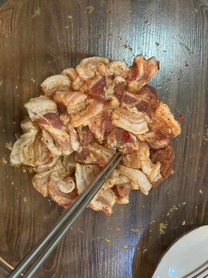 五花肉建议多腌制一会儿,腌制过程中避免无聊可以追一追电视剧~