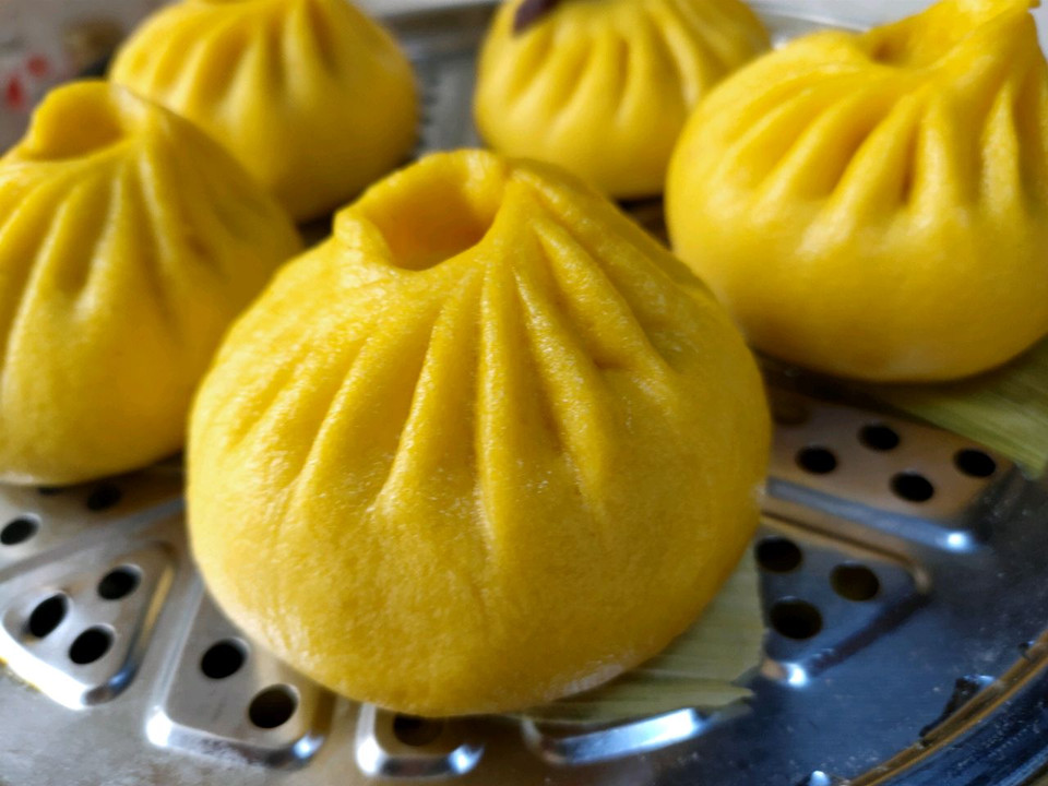吃腻了传统包子来换个口味试试一发南瓜豆沙包子