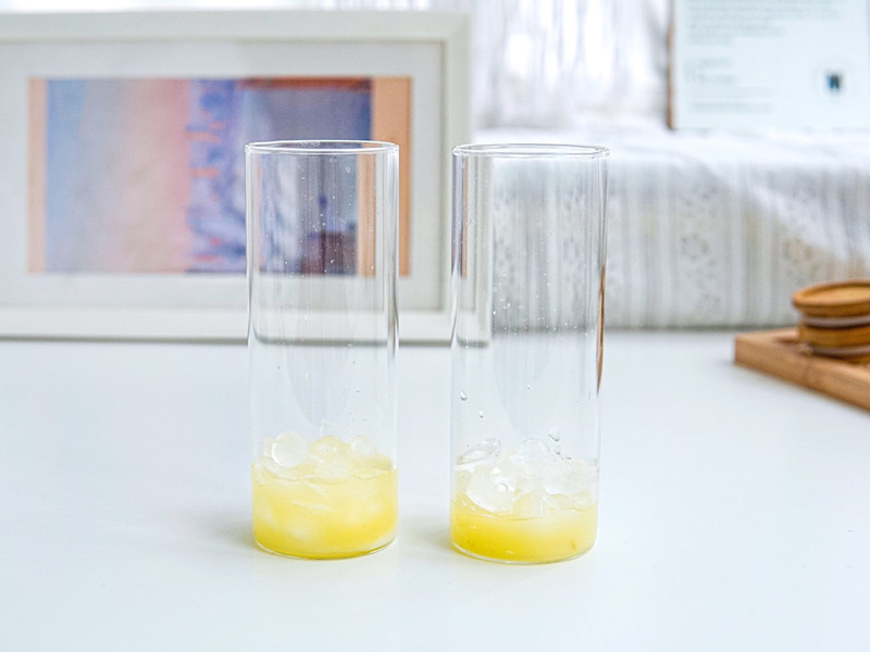 食材家常易取,只需要柠檬、蜂蜜、苏打水和蝶豆花就可以了,再多备些冰块。渐变的颜色是因为蝶豆花遇酸,正常开水冲泡的蝶豆花水是蓝色的,遇到柠檬汁就会变紫色,产生了渐变的颜色,可太仙了!蜂蜜是调味的,苏打水增加口感,最后最好多放些冰块,冰饮就这么诞生啦!