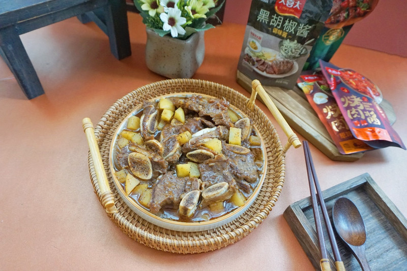 黑椒牛仔骨是一道经典的西式菜,自从流传至广东、香港一带后,这道菜便完美地吸收了粤菜和西餐之长,成功地取得了改良与创新。通常的牛仔骨加入了干白、玫瑰露、生抽等多种调料进行腌制,一般以洋葱打底,有的也搭配了青甜椒和红甜椒,其成品菜的色泽鲜艳诱人,口感非常丰富。而我今天分享的黑椒牛仔骨做法更是简单,用一包黑椒酱调味料就可以达成想要的效果,不用去准备复杂的调味料,非常省事。
