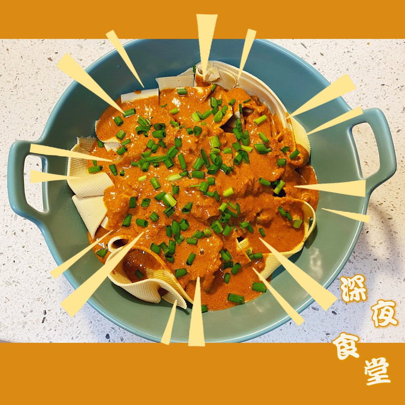 毛肚选择白色薄的那种,食材沸水涮烫一下即可,不要太久,不然会老。出锅脆脆嫩嫩的,配上完美的酱料,简直不要太香!