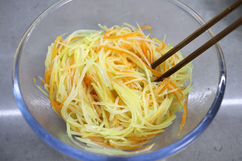 土豆丝卷饼是一道非常受欢迎的小吃,不管是早餐流动车还是餐馆里,都能见到它的身影。有的人以为很难,其实并不,今天我就教大家做这道土豆丝卷饼,手不沾面,只用筷子搅几下,就能做出柔软又筋道的卷饼来。而土豆丝也更是简单,3分钟由生变熟,而且味道百变,即使天天吃,也不觉得烦。