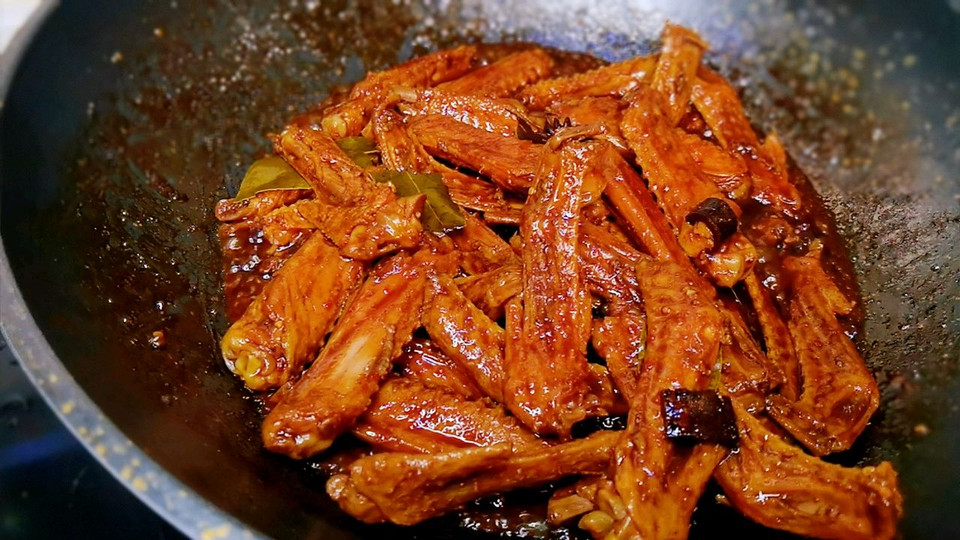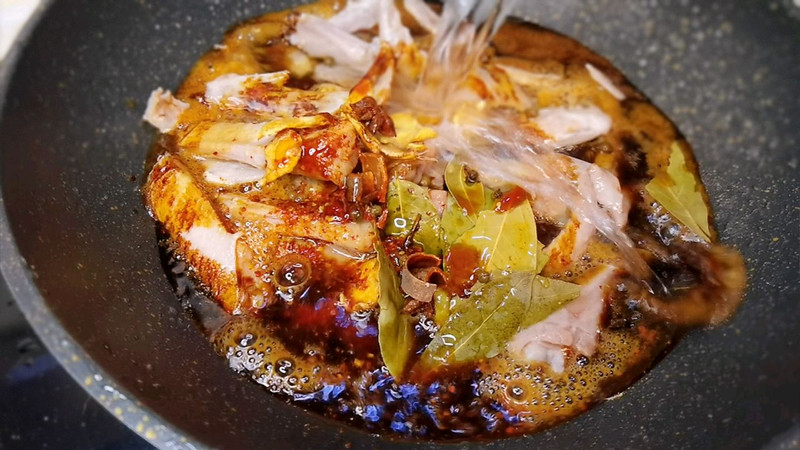 2、放入1勺白酒,再煸炒几分钟,完全可以去掉鸭肉的腥臭味。(因为鸭肉臭不喜欢吃的,可以尝试一下这个方法)