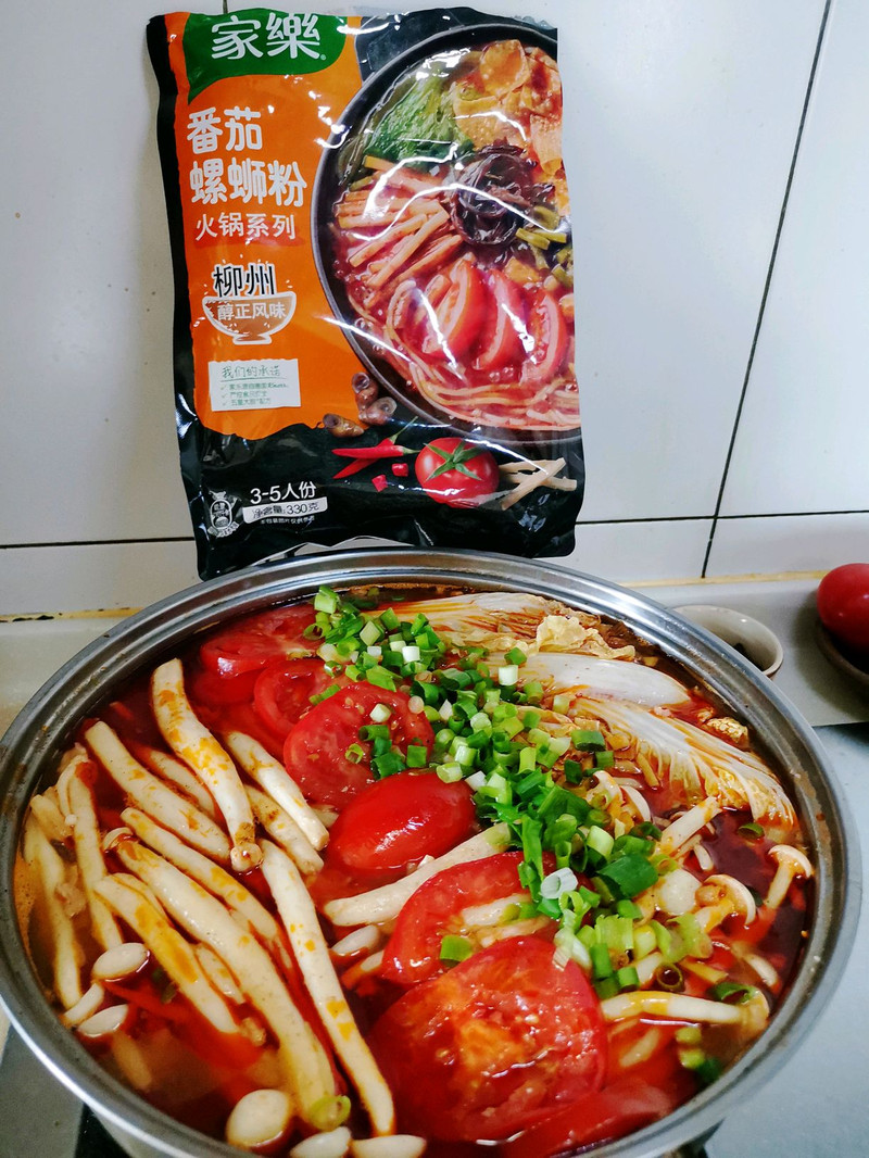 刚收到家乐螺蛳粉火锅底料体验装,第一次做,因为有现成的底料,按照说明下入自己喜欢的菜,满屋子都是螺蛳粉独特的味道,冷气开足,很酸爽,味道不是一般的好,简单又省事