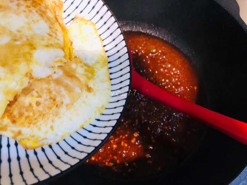 超级下饭的一餐,好吃的鸡蛋完美的酱汁,拌米饭超级好吃,一定要不粘锅和新鲜鸡蛋才可以做出完美煎蛋。