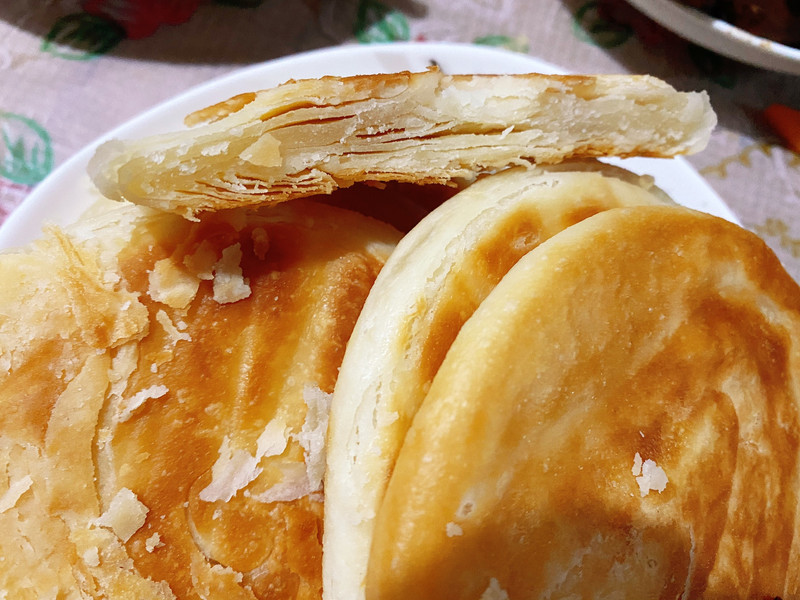 椒盐馅烙了三个,忘拍照了。口感吃起来也很好。馅料里的花生和芝麻用擀面杖捣碎的,捣碎后放入油酥和花椒粉和盐。比较麻烦做菜好吃都有技巧,我的每道菜都有小妙招,大家搜索“豆果”可以直接查看我的菜谱!
