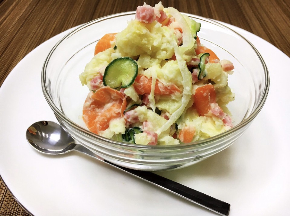日式土豆沙拉的做法,美味富含营养,用盐腌制的蔬菜清脆爽口、土豆的绵密、沙拉酱柔滑细腻、完美组合的口感可作为主食享用,用微波炉蒸土豆的方法更方便哦……