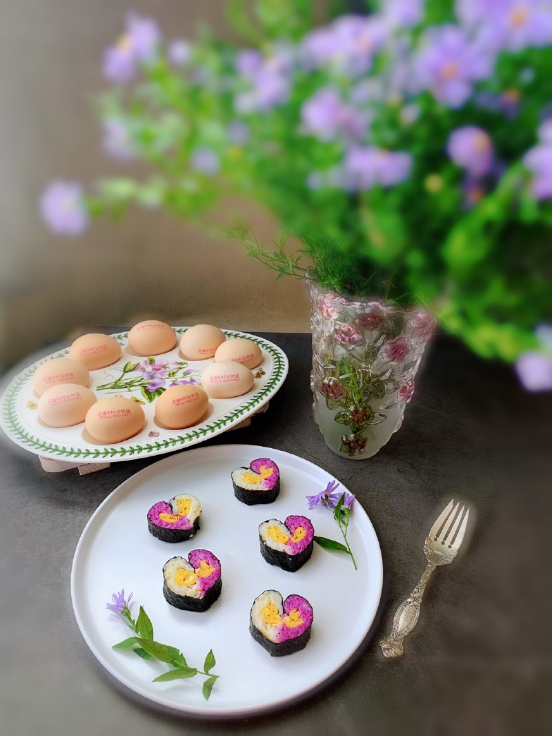朋友们来家小聚,做了双色爱心寿司,愿我们的友谊长长久久。双色爱心寿司是鸡蛋和水果的完美碰撞。鸡蛋用的是圣迪乐村谷物蛋,没有添加任何的抗生素和激素,吃起来让人放心。