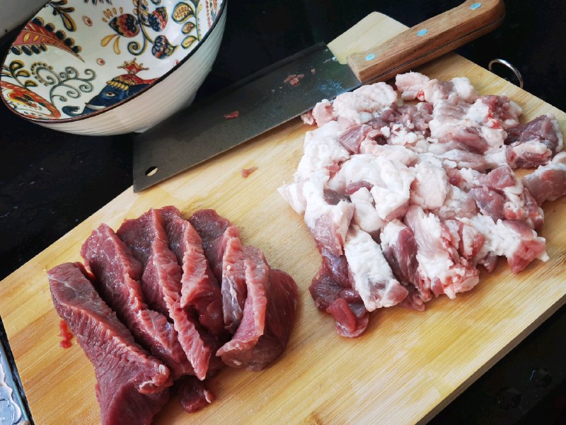 ①肉泥我是自己手工剁的 用料理机打出来的肉 跟自己剁的味儿还是有些许差别