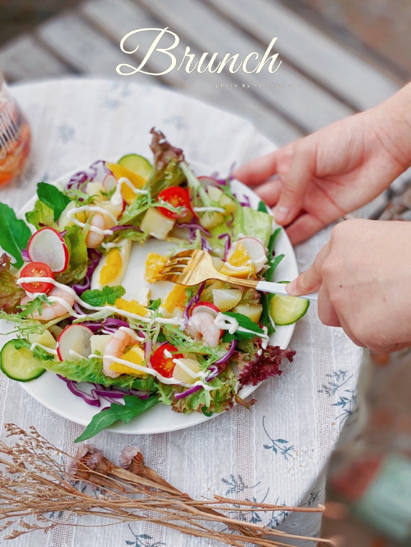 睡到自然醒的年轻人的Brunch,早午餐吃什么?网购了鲜以优旗舰店蔬菜套餐,隔天就到家,食材新鲜,用来制作大虾土豆杂菜花环沙拉,减脂又健康,饱腹感还极强,健身完来一碟,元气满满一整天!luo