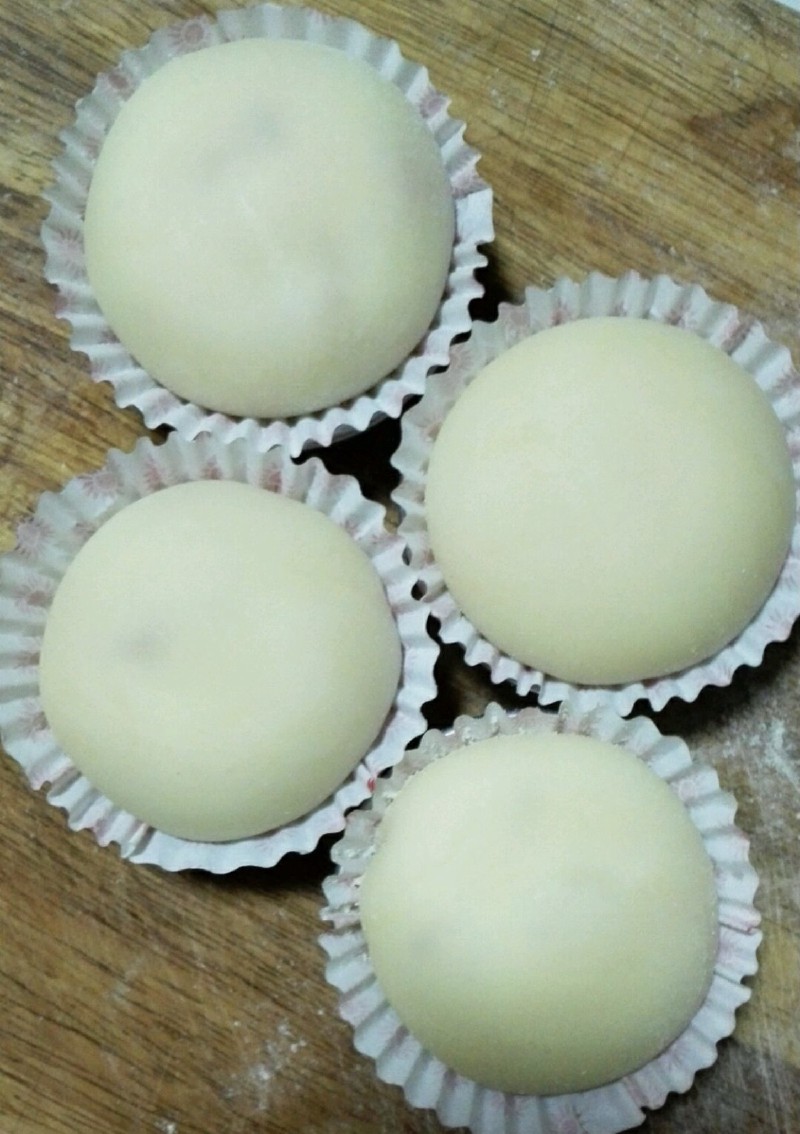 雪媚娘皮建议统一擀好再包,奶油在常温空气中待时间短,不容易塌!