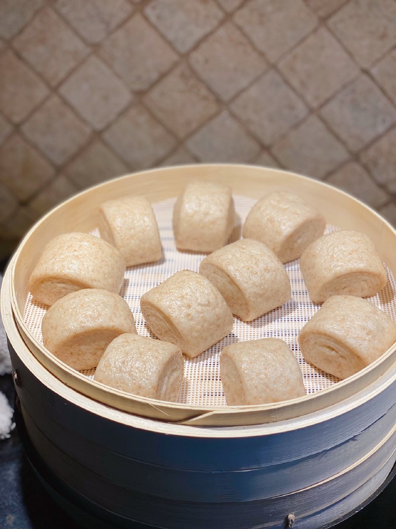 明天开始正式跟减脂博主更新减脂餐, 所以蒸一些全麦馒头 材料如下: 中粉400g 全麦粉100g 常温水280g(由于我家面粉太干了,我用了300g) 酵母粉5g 步骤: 1、可先用水勾兑开酵母粉,静止五分钟.冬天可适当用些温水,但温度不能过高,会烫死酵母. 2、水分次加入,用筷子搅拌成棉絮状,即可下手揉合成团,面不要和太软,做的馒头会形状扁平,揉稍微光滑后即可盖上保鲜膜进行第一次发酵.我的室温25度,大概45分钟即可.随着室温变化,可减少及延长发酵时间,将面团撕开,发酵成蜂窝状即可. 3、发酵好后拿出轻撒一些面团先将面团排气,多揉一会就会面团更光滑.如果揉不动可以擀,大概擀+折叠二三次即可.气排的越好,组织越漂亮. 4、如果做馒头,按你的需要分出面剂,再揉成馒头形状即可,尽量揉的瘦高一些,蒸出来才会圆挺丰满.直接摆在蒸笼里即可. 5、如果做刀切馒头,再擀的时候就可以直接擀成大片,擀好后,喷少许水,顺着一侧卷起,卷紧,最后刀切好面剂即可,但不要切太窄,蒸完容易倒. 6、二次发酵我用了40分钟,用手轻压面剂表面,有回弹,即可开大火,蒸制15分钟,停火后五分钟后再开盖. #全麦馒头[话题]# #减脂餐[话题]# #健康[话题]#无糖无油全麦馒头的烹饪技巧