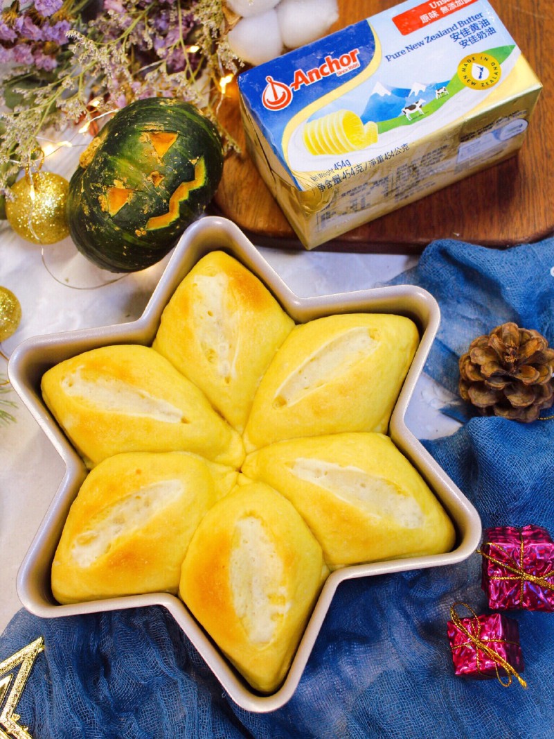 万圣节马上就要到了,诡异的造型做的太多,想转换一下风格做接下来的圣诞主题,正好新入手了漂亮的六角新模具,像星星又像雪花,作出的面包形状漂亮!里面还包裹着玉米奶酪内馅,做到兼具颜值和内涵双标准。
