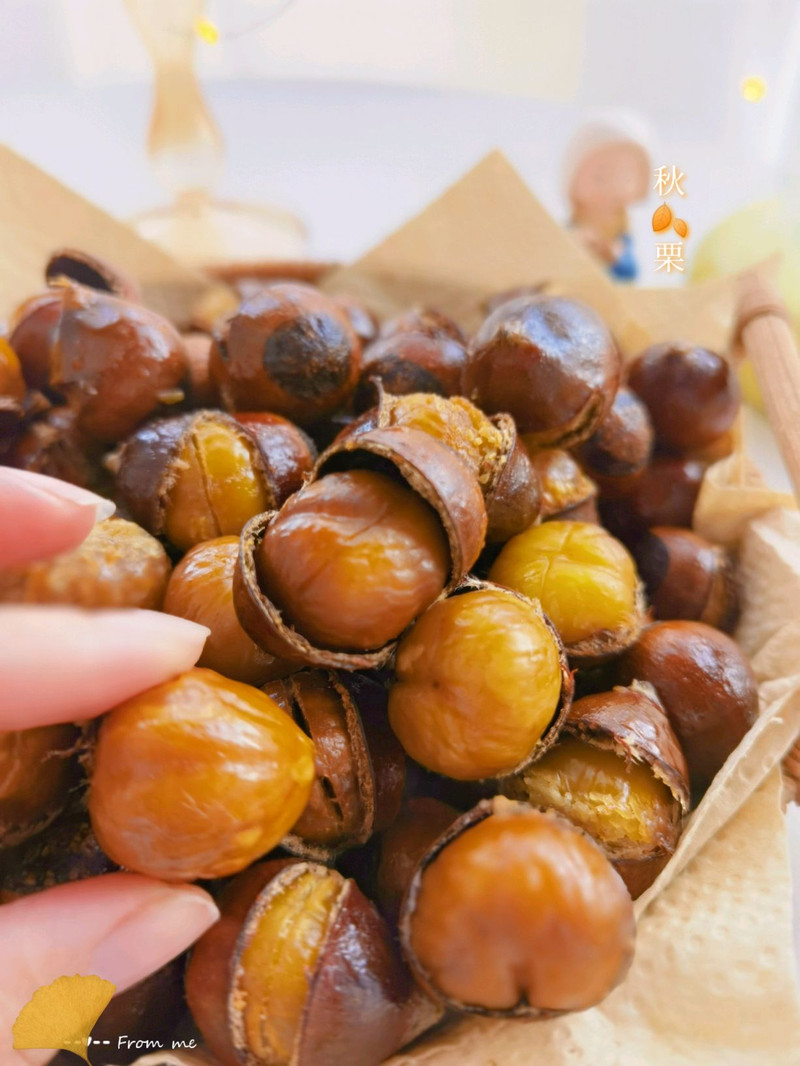㊙️ 我买的是锥栗比一般的板栗香,划开板栗的时候一定要小心。煮10分钟是为了让它打开后糖油能进去板栗里面。