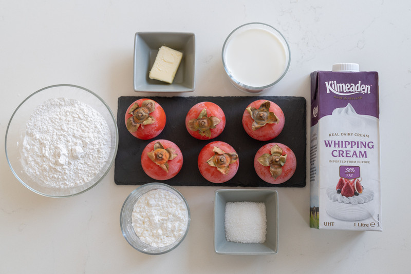 柿子成熟的季节,熟透的柿子颜色橙红发透,果肉甘甜软滑,裹上香浓的奶油,包上同是橙色系的软Q的雪媚娘皮,是冷冽秋风里一份热烈的幸福滋味,柿子我选的小小的珠柿,一口一个的节奏,所以每个雪媚娘都包了一整个柿子