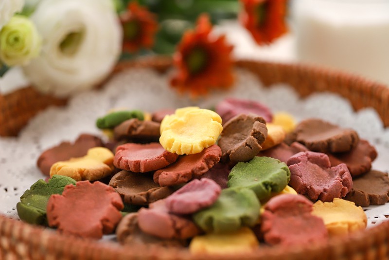 和普通玛格丽特饼干相比,五彩的颜色更加有食欲,迷你的尺寸不仅烤制的时间减短了,用光波炉烤出来的效果也会更好~