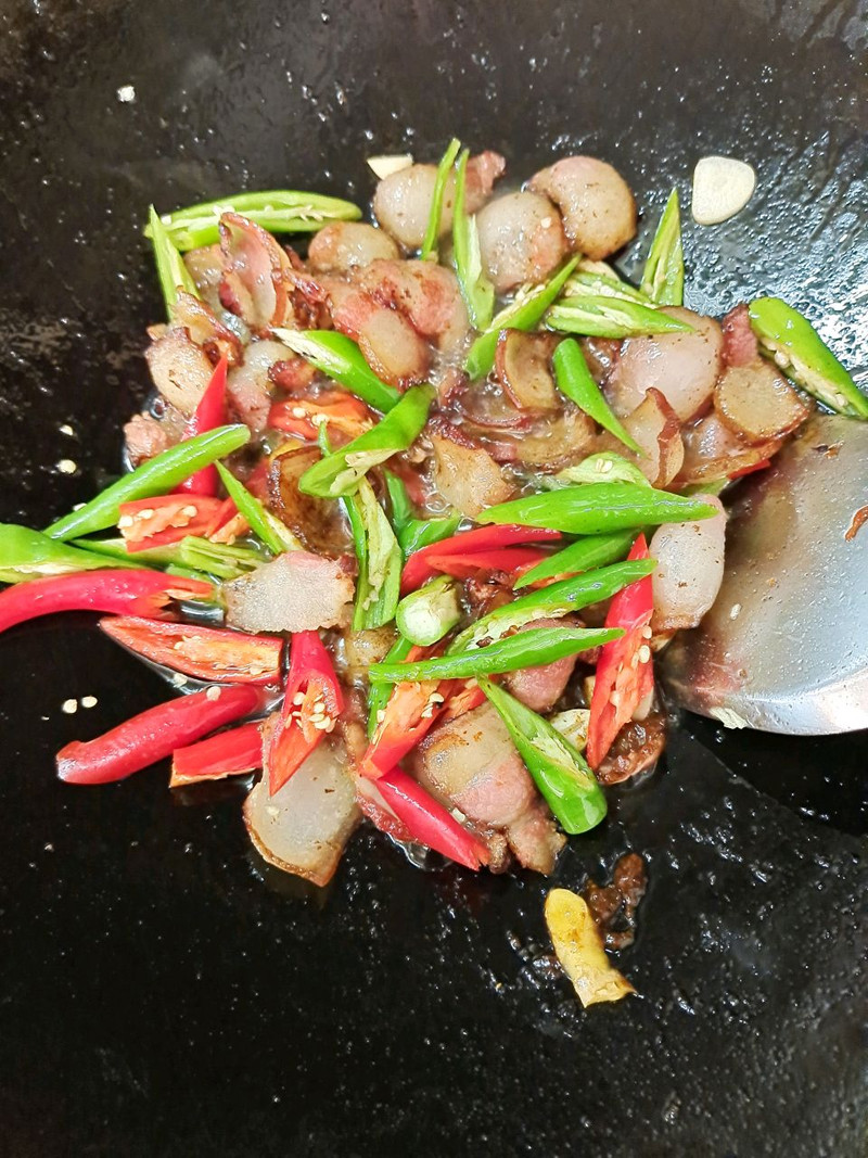 不怎么爱吃猪肉的人,但是偏偏对着腊肉情有独钟!今年的广州太热了。还没机会腌制腊肉。但是冬天就是馋肉吃。索性要老公买了一些回来。他买的腊肉可真的是肥呀。他说腊肉就是要吃肥的。那叫一个香。好吧。就给做了个我们湖北人爱吃点酱香腊肉炒香干!咸香好下饭!