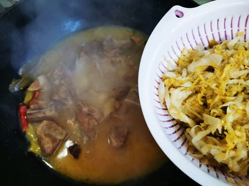 冬天炖上一锅骨头炖酸菜超级好吃,喝汤吃肉。太舒服了。