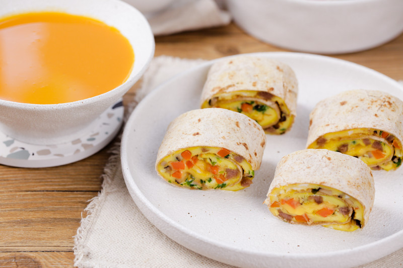 我今天早上批发了5斤勇气才起来做早餐的,所以怎么简单怎么来。经常怀念肯德基的墨西哥鸡肉卷,所以就有了这道杂蔬香肠卷,鸡肉卷今年回归后一直没有去尝过味道,也不知道还是不是以前那味道,为了不让孩子吃快餐食品,所以我自己也不去吃,有时候也会想念,毕竟是年轻时的回忆,那时候就喜欢吃汉堡卷饼配可乐,糖分和碳水带来的快乐无与伦比。