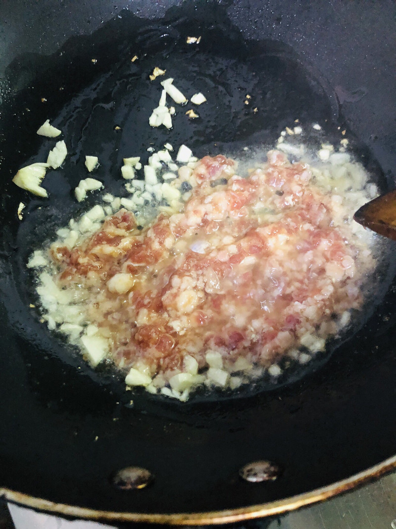 腌肉末的时候一次性就把盐加够了,这样在炒的时候茄子就只需要加酱油就好。