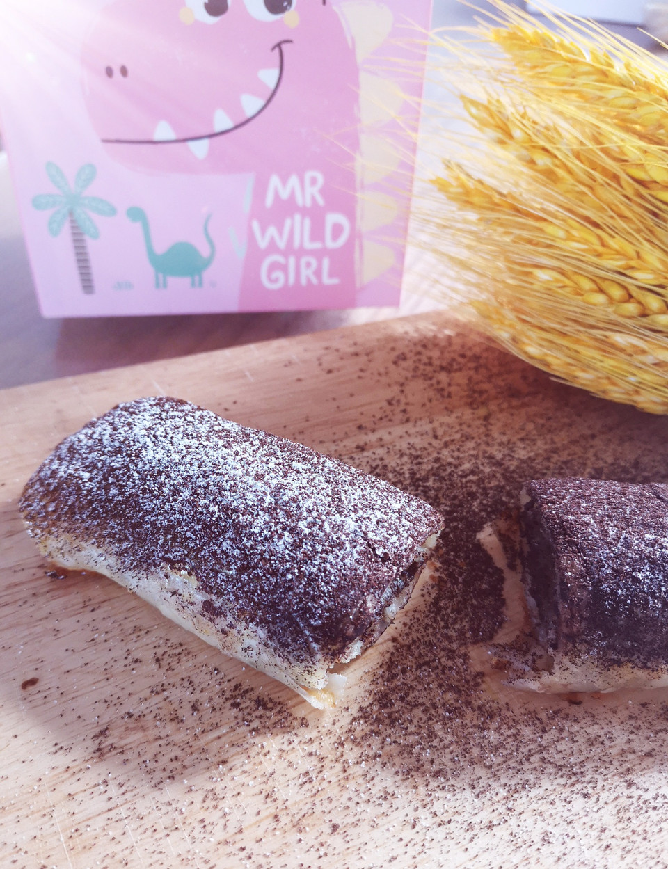 包巧克力之前手抓饼里可以均匀的筛一层可可粉,那样可能会更像市面上的脏脏包。
