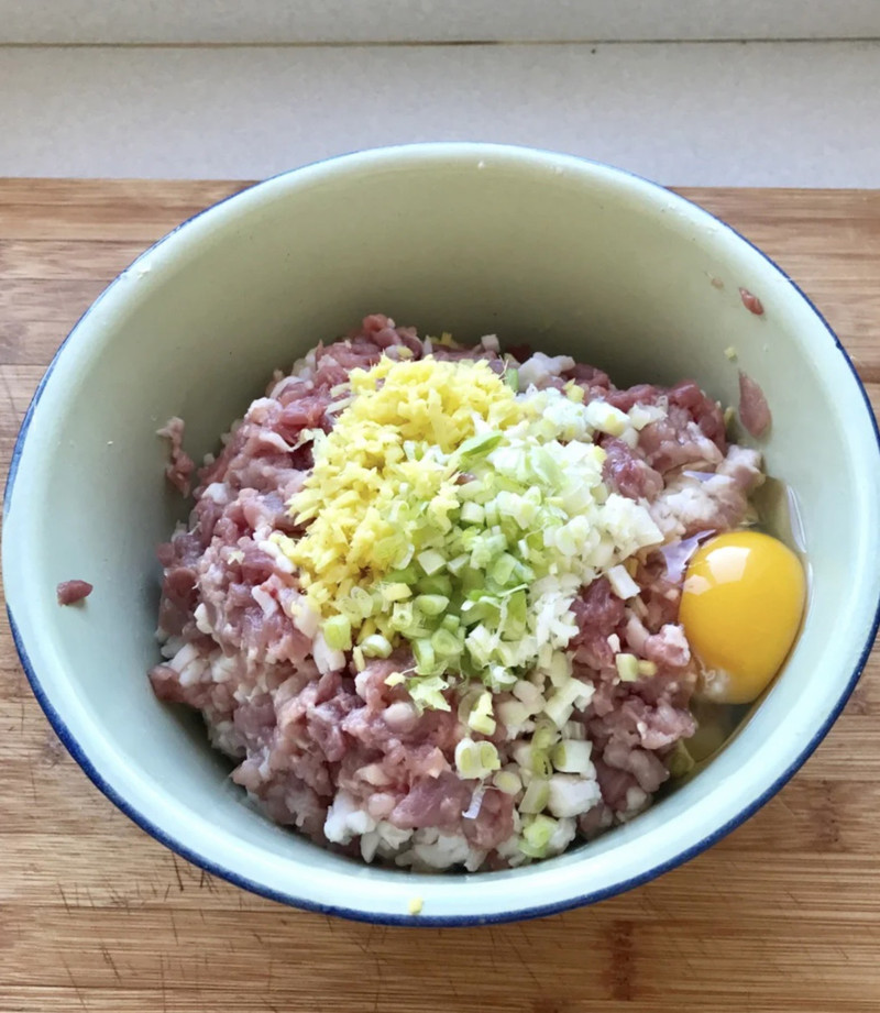 扬州狮子头的做法 步骤3 把葱姜末放入肉馅内,再放入鸡蛋,盐,花雕酒,生粉,白胡椒粉,鸡精,糖少许(其中糖是起到去除肉腥味,增添鲜味的作用,最好不要简略)然后按一个方向不停的搅拌,搅拌的同时放入一些凉白开,使肉上劲,直至有粘稠的肉丝出现。