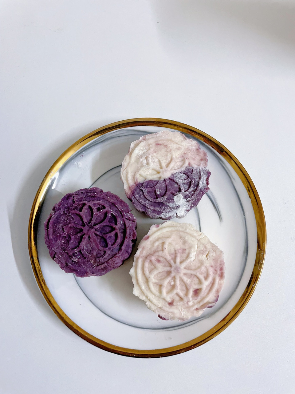 2⃣️:蒸好的紫薯山药压成泥,可以放进保鲜袋中比较好压。