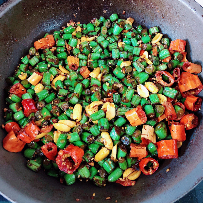 干煸四季豆是一道特色传统菜肴,属于川菜菜系♥️主要制作材料有四季豆、红干辣椒等。厨娘今天教您一招,让您秒变大厨,加一物“黄飞红香脆椒”辣爽酥脆,一吃上瘾,让干煸四季豆口味干香辣爽,开胃下酒。制作简单,容易上手,营养价值丰富,是餐桌上一道色香味俱全的开胃菜
