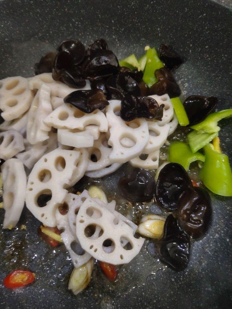 莲藕不容易入味,入锅后及时加盐,让莲藕充分入味。