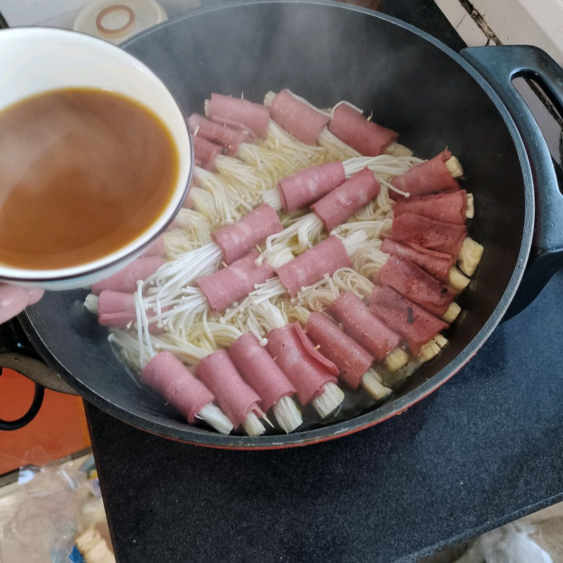 金针菇要尽量攥干水分,避免煎的时候油崩。