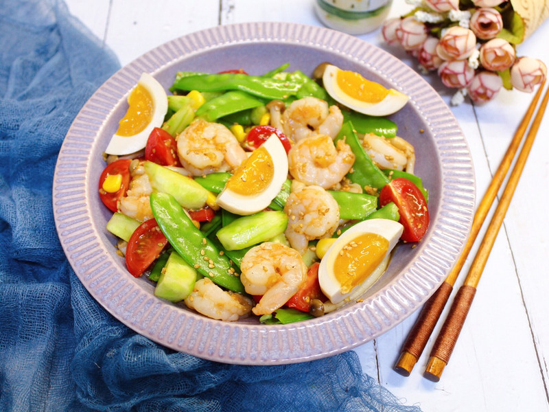 虾仁时蔬大拌菜