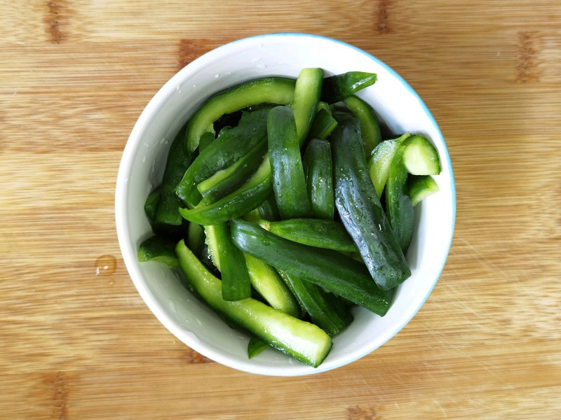 黄瓜会有点咸味,炒的时候就不用加盐了。