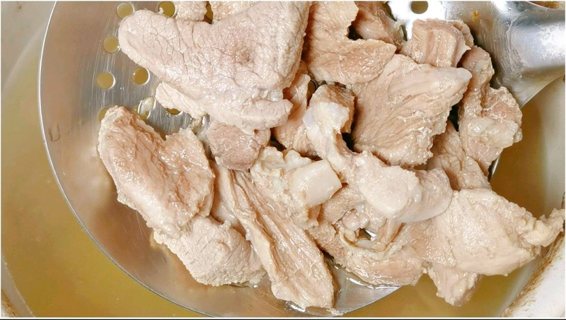 1.煮好的猪肉,记得用擀面杖或刀背,轻轻锤打至出绒,这是后面肉松成功的最关键因素。