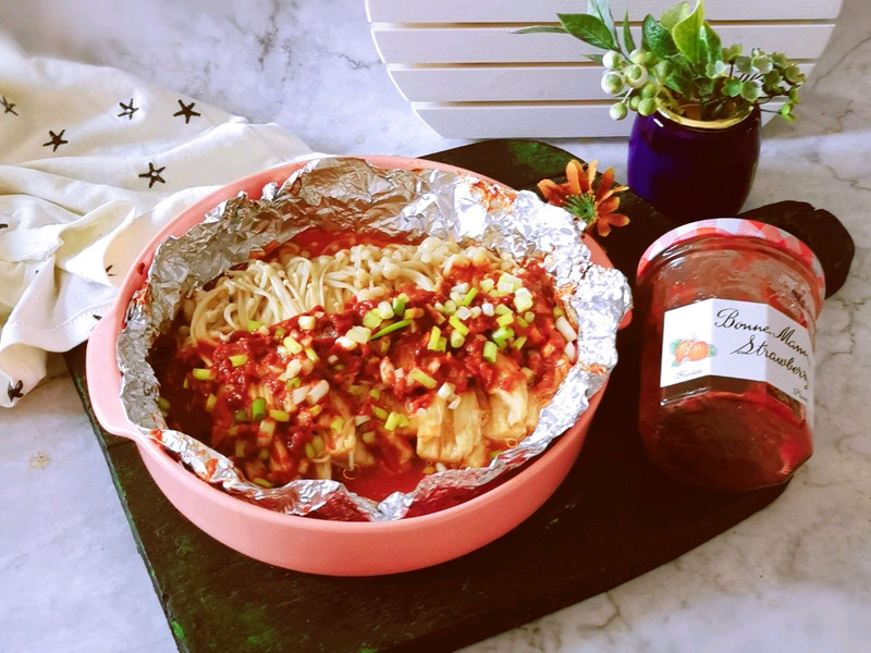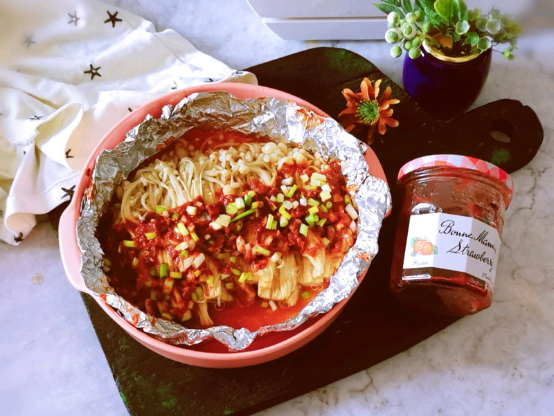 因为喜欢金针菇的味道和口感,鲜美有嚼劲,常常会买来吃,特别是各种口味的烤金针菇更是喜爱有加,有时是孜然味的,有时是麻辣味的,今天用番茄酱和蓓妮妈妈草莓果酱,双酱金牌组合来一道酸甜口味的,加了蒜末和黄油辅助调理味道,放入烤箱烤制15分钟,散发着迷人的香气,酸甜可口独具特色,蓓妮妈妈果酱,名品牌,传统工艺精良制作,果肉丰富饱满,可用多种烹饪方式制作花样美食,蓓妮妈妈果酱给这道菜提供了果香和甜蜜,大家都好喜欢。