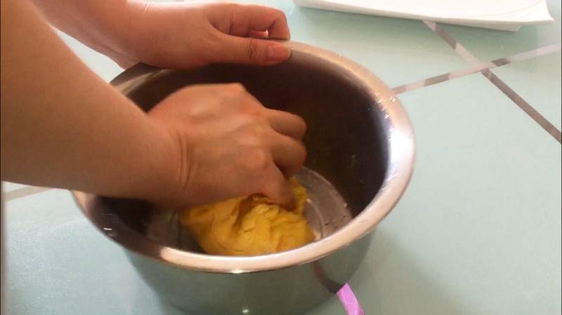 1、南瓜和糯米粉揉团时,糯米粉可以分多次加入。