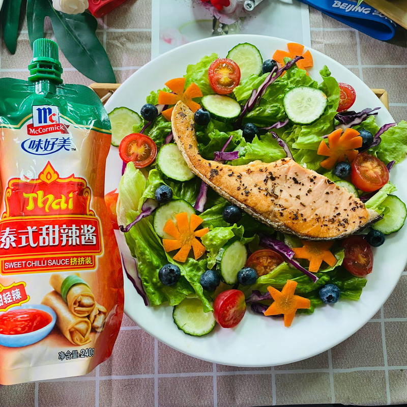 泰式甜辣酱香煎三文鱼排蔬菜轻食沙拉