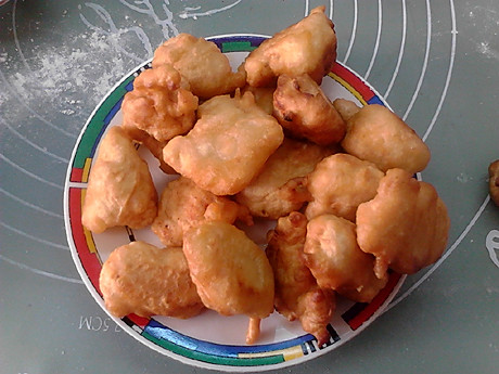 看起来没多少鸡肉,巴掌大一块,切成小小块,湿粉干粉湿粉裹了三层,也没觉得多。结果入锅一炸,体形暴涨,变成好大一堆。没想整那么一大盘,最后只用了一多半来裹咕咾汁,剩下一小半原味,不喜欢酸甜口的也可以吃吃。