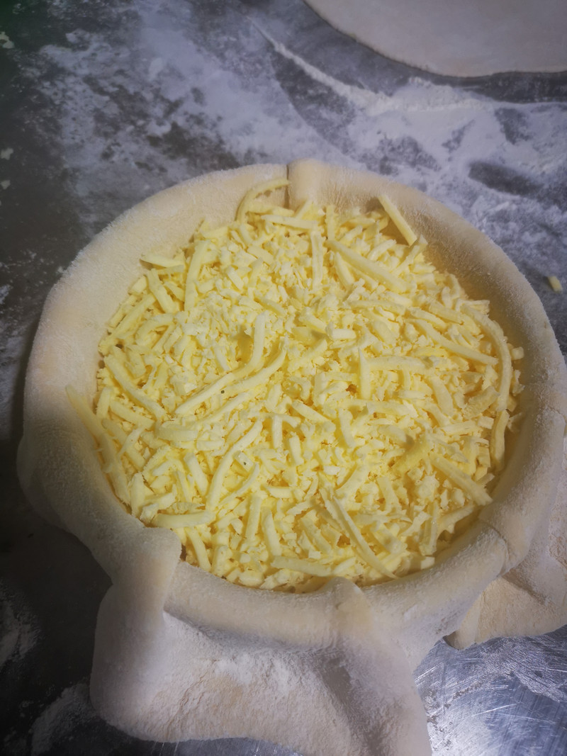 今天做一个双层的组合披萨,主要在于用料的放置和烤制的时间,面团的话大家用自己喜欢的配方都行的。这分量做一个六寸,其他尺寸的自行换算即可