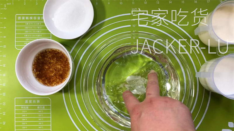 2、泡吉利丁片,夏天用冰水,冬天用室温水,使用时拧干水分。