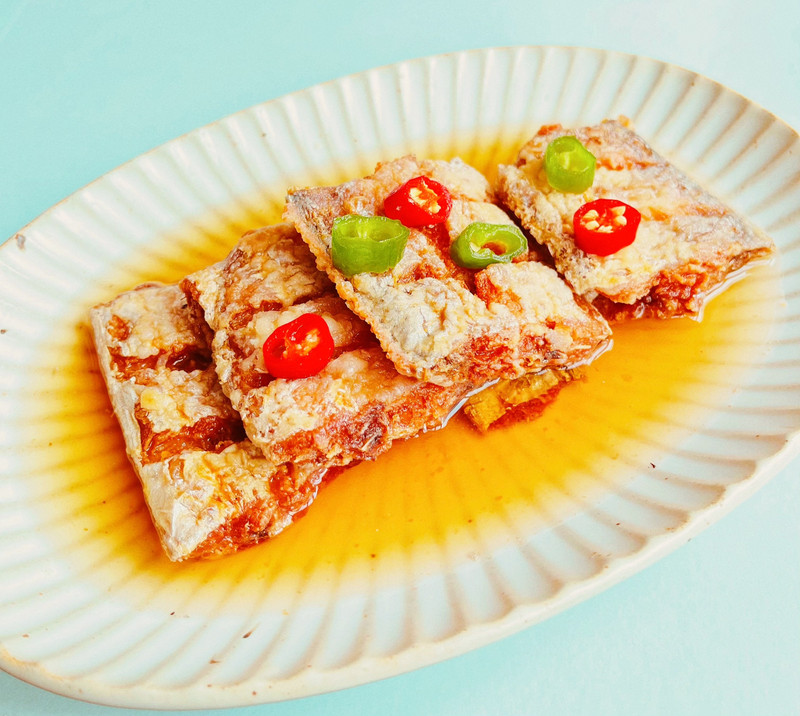 带鱼煎好要凉透在加糟卤盖好盖子放入冰箱三小时就能吃