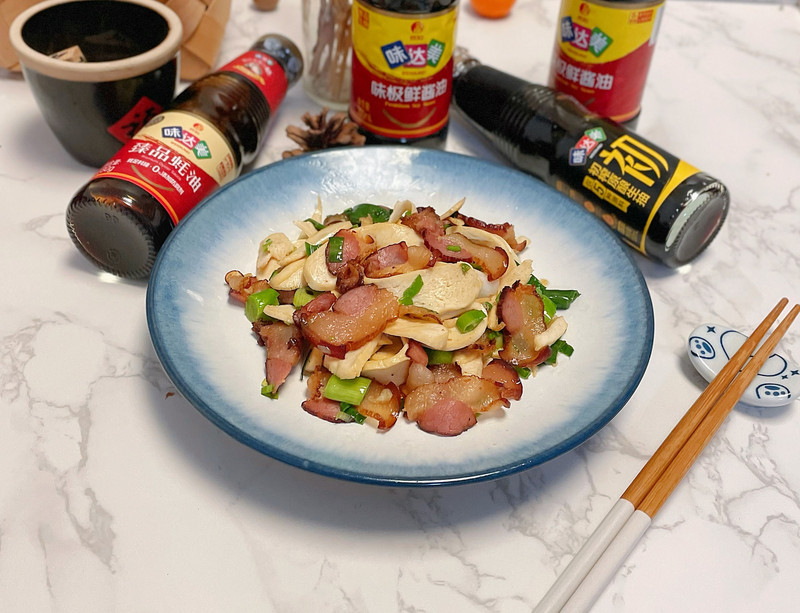 由于腊肉是咸口的所以不用加盐只需一勺生抽即可,腊肉切的越薄口感越好,吃起来也不易腻