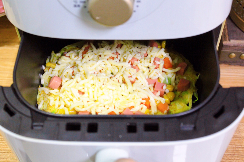 最近总是在琢磨着家常减脂餐,减脂餐的逻辑就是高蛋白高纤维低碳水,今天带来的低脂圆白菜披萨就是这样一道菜。圆白菜带来大量的维生素,再打入两个圣迪乐高品质鸡蛋,加入少许面粉做为粘合,以此做为披萨饼底,上面撒上杂蔬粒和火腿粒,还有提味的马苏里拉奶酪,只需要空气炸锅简单烤一下,就可以得到美味不长胖的披萨!