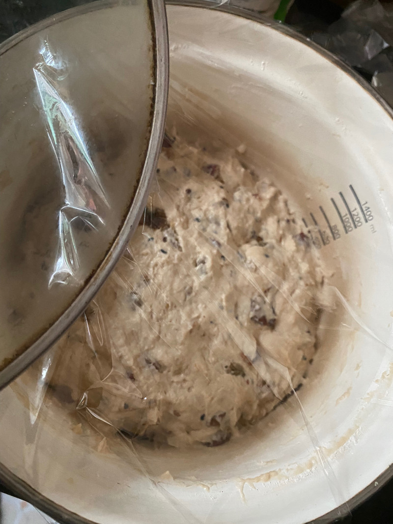 喜欢加坚果蔓越莓巧克力碎也可以,自己看着手边材料加。不能按照馒头的做法直接放锅里蒸,会连成一片,就放到模具里,蒸成大发糕最好。