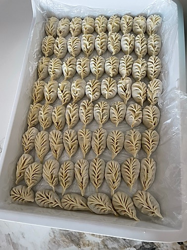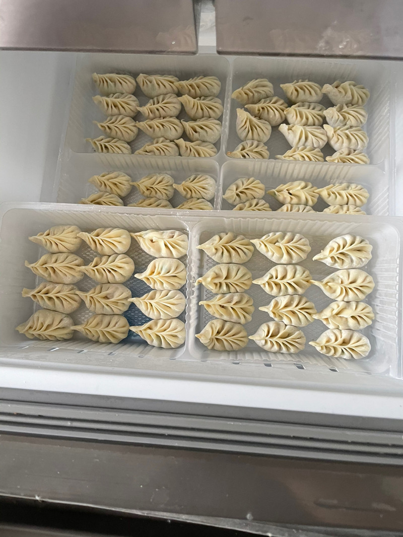 饺子皮是现成的,需要在饺子皮周围涂点水,这样更容易粘合在一块。